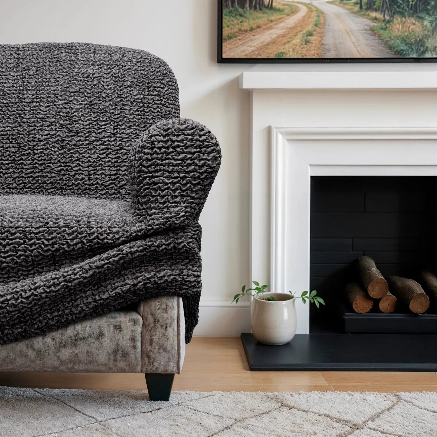 Our slipcover fits most sofas with EVEN armrests. Special anti-slip cardboards included, and prevent slipcover from sliding