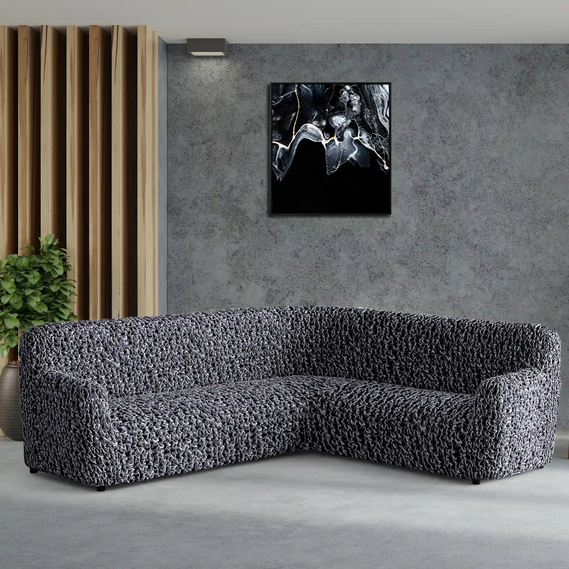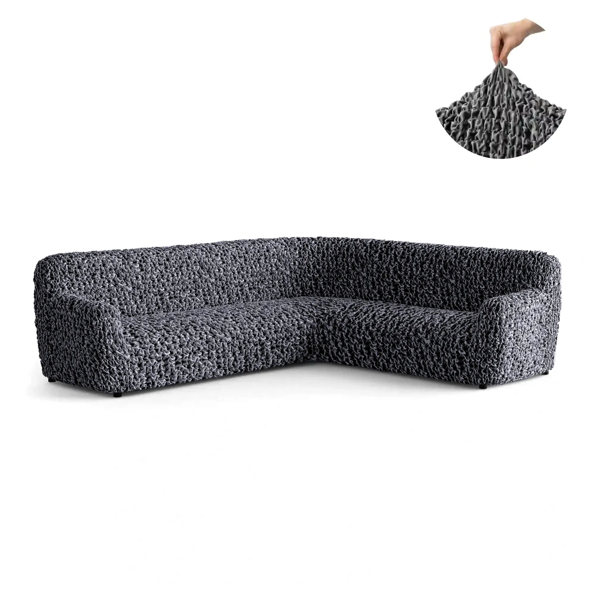 Corner Sofa Cover - Grey Fuco Velvet Collection